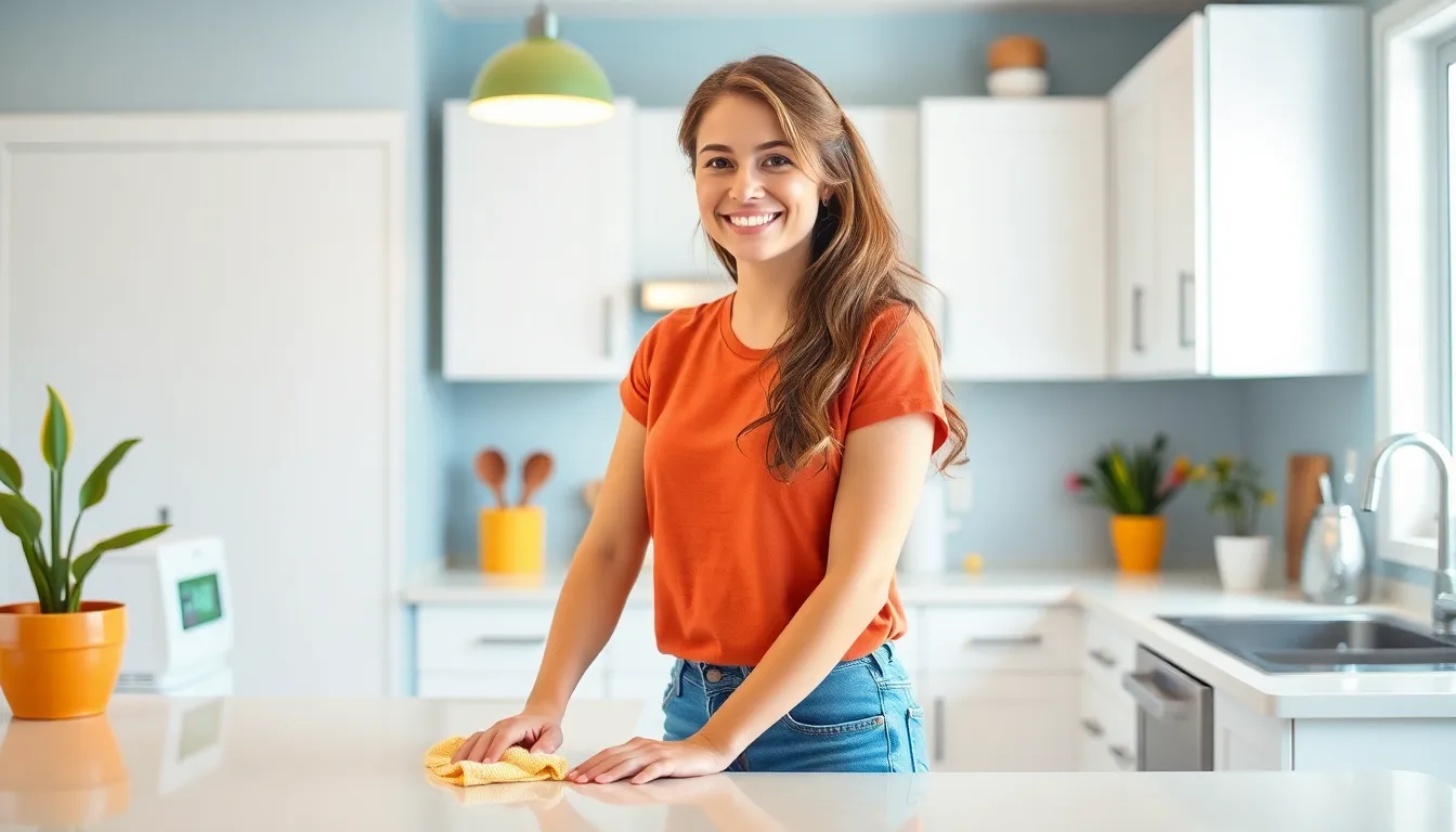 Countertops need daily attention to keep them free from stains and spills. Using a mixture of vinegar and water creates an effective natural cleaner that removes grease without harsh chemicals. A microfiber cloth works well for wiping down surfaces, as it traps dust while being gentle. Scrubbing with baking soda can tackle stubborn stains on countertops. Various materials require particular care, so always check guidelines for stone or wood. Regular cleaning prevents bacteria buildup, promoting a healthier kitchen space.