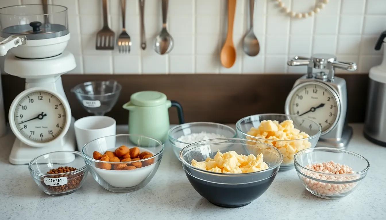 Accurate measurements enhance baking success. Utilize measuring cups and spoons for dry and liquid ingredients, while a kitchen scale works best for precise weighing. For sticky substances, such as honey or syrup, spraying measuring tools with cooking spray helps in easy pouring. Always level off dry ingredients with a straight edge to ensure consistency. Consider using a dedicated container for pre-measured staples like flour and sugar to facilitate quick access during baking.